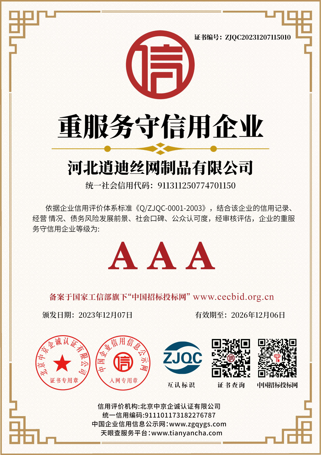依據(jù)企業(yè)信用評(píng)價(jià)體系標(biāo)準(zhǔn)《O/ZJOC-0001-2003》,結(jié)合該企業(yè)的信用記錄經(jīng)營(yíng)情況、債務(wù)風(fēng)險(xiǎn)發(fā)展前景、社會(huì)口碑、公眾認(rèn)可度,經(jīng)審核評(píng)估,企業(yè)的重服務(wù)守信用企業(yè)等級(jí)為AAA